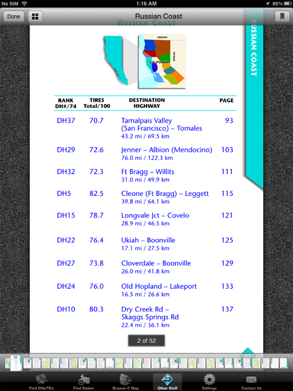 and Twisted Edge (TE) motorcycle roads in Northern California.